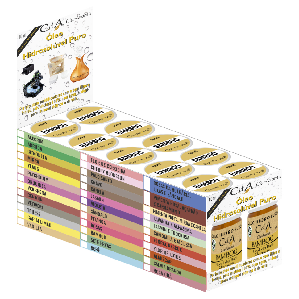 Desenvolvido especialmente para Umidificadores com e sem filtro e fontes, pois se mistura 100% com água, além de ser perfeito para Rechaud Elétrico e de Vela. Contém florais de Bach na composição, em 10ml de óleo.